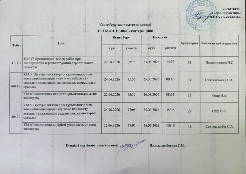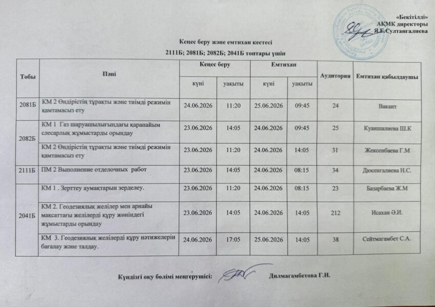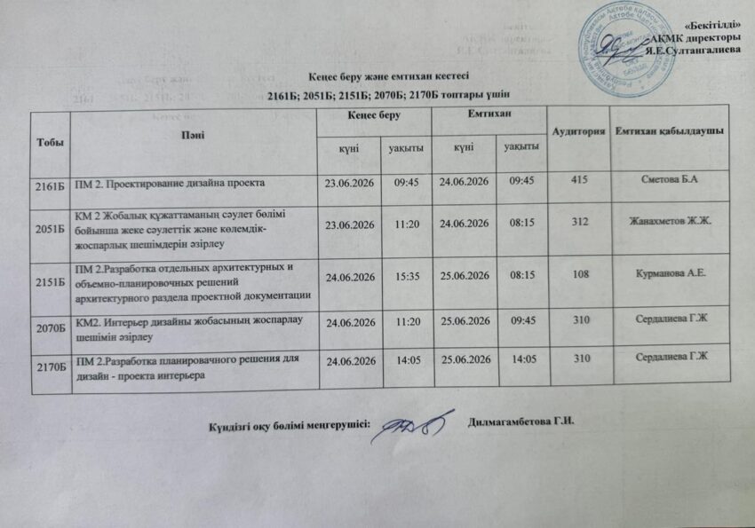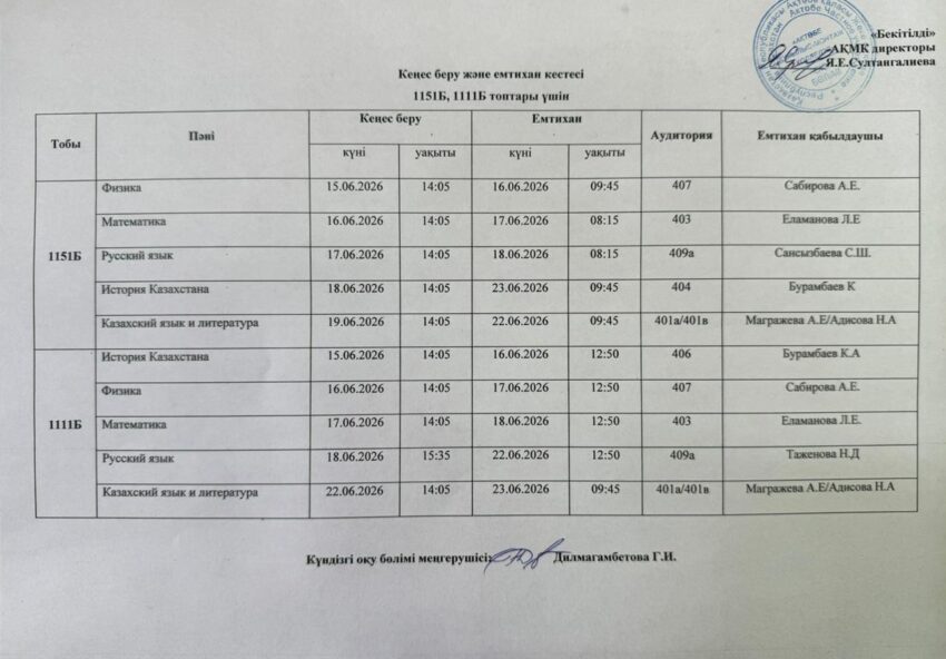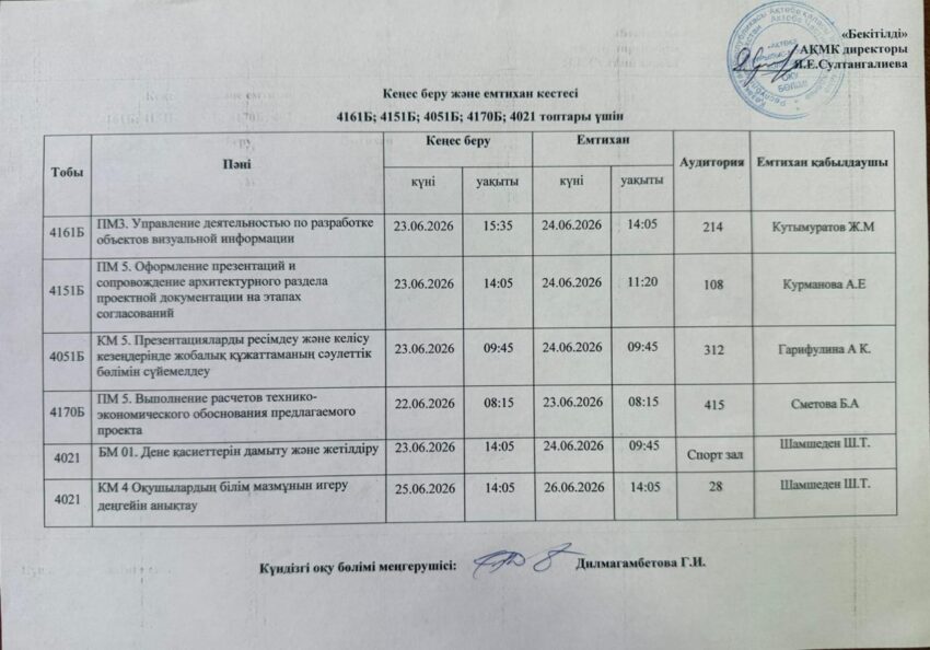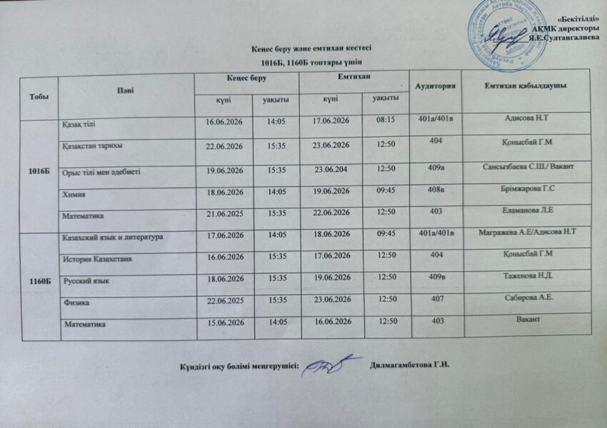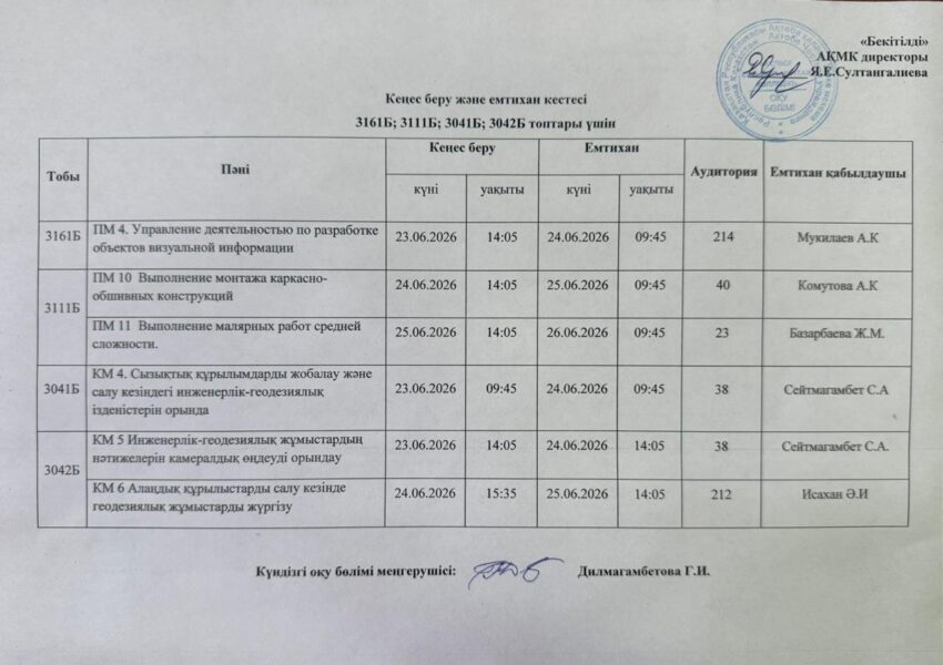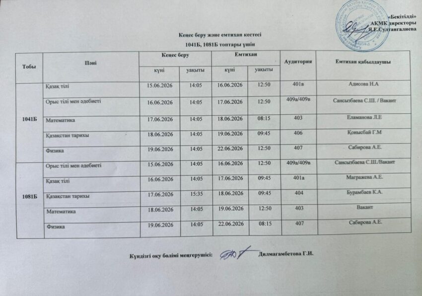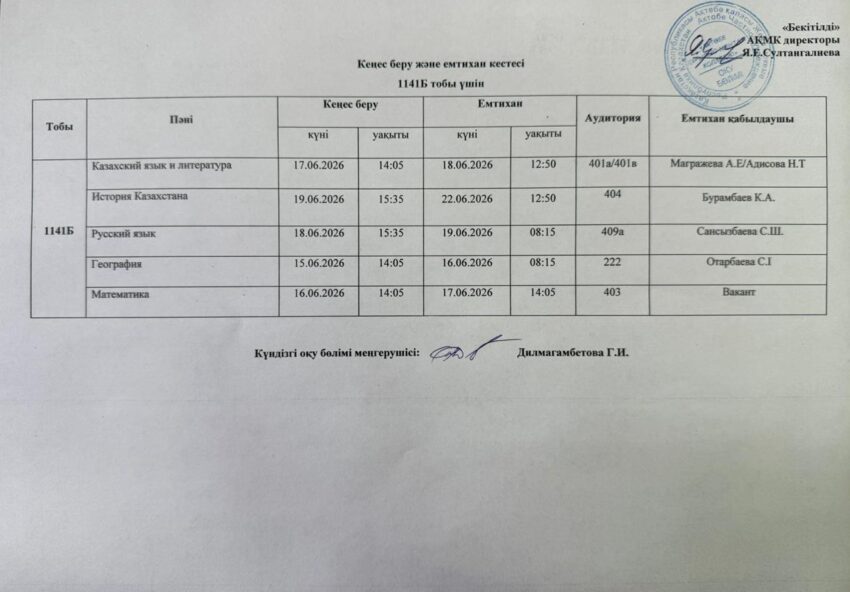 Емтихан кестесі