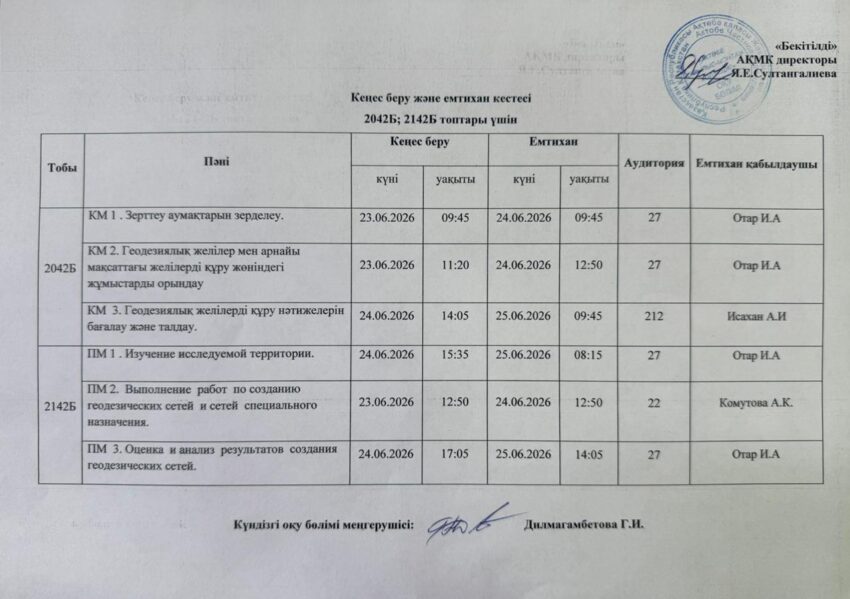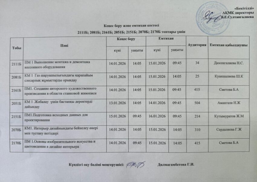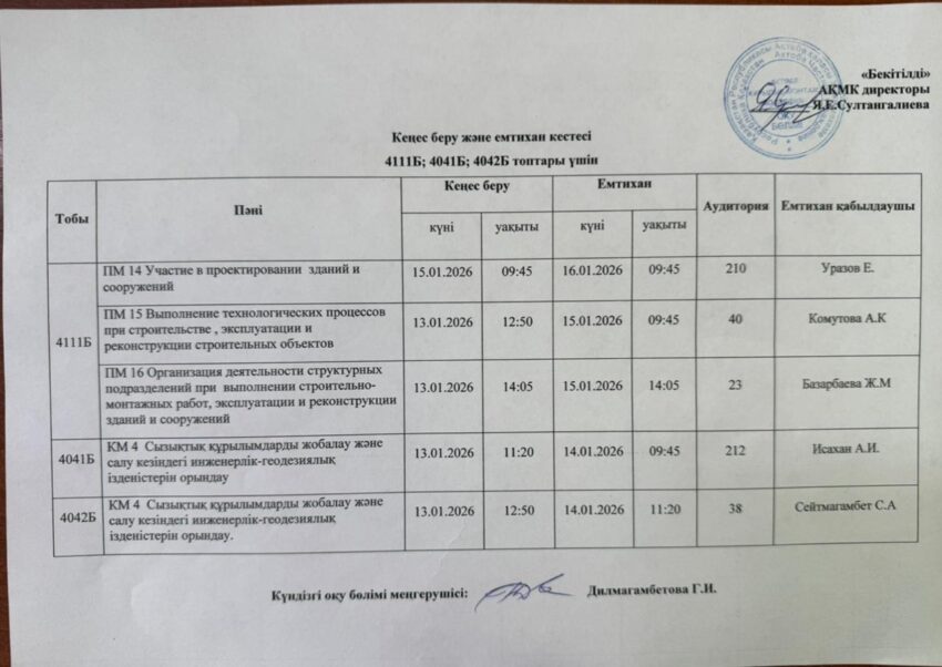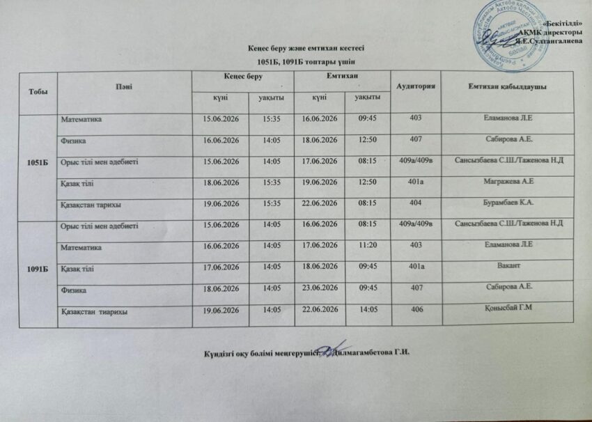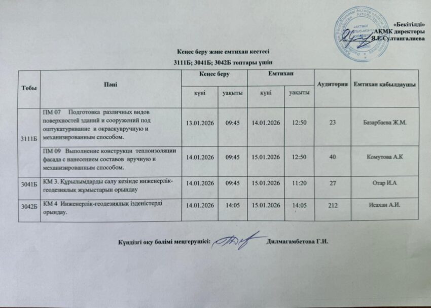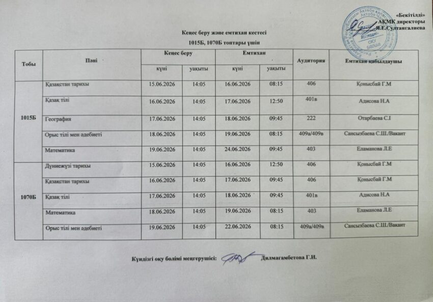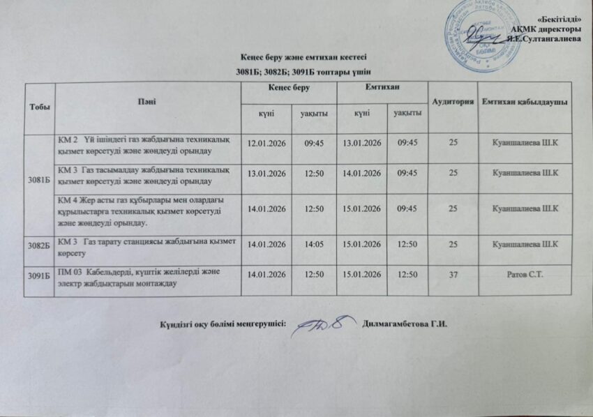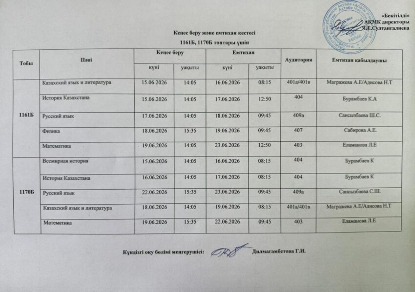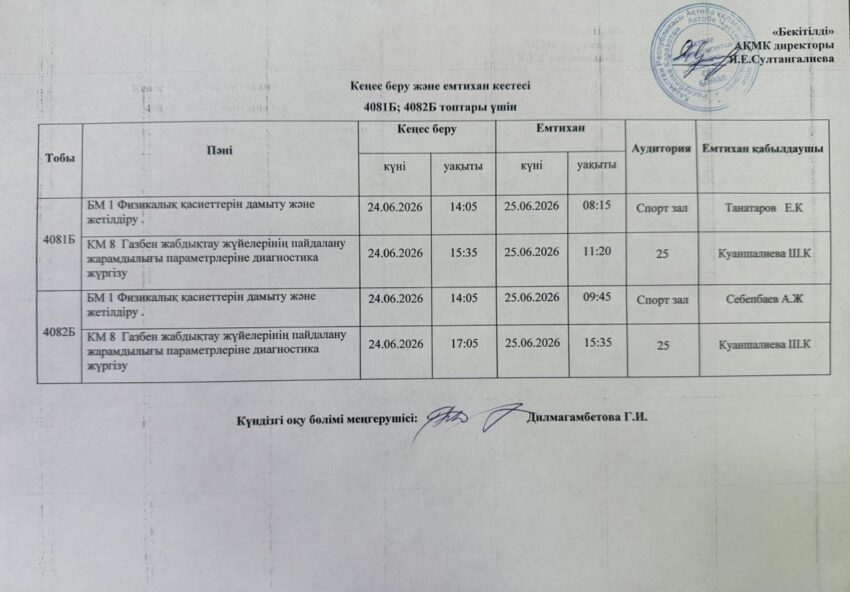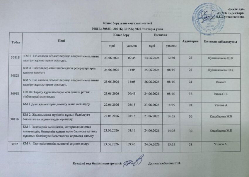 Емтихан кестесі